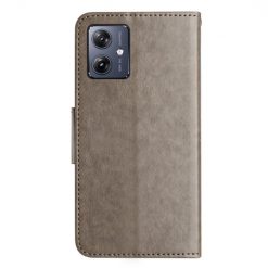 Peněženkové pouzdro Embossing Pattern Motyl a květ šedé – Motorola Moto G55 5G