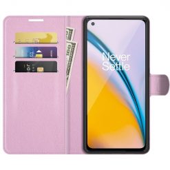 Peněženkové pouzdro Litchi růžové – OnePlus Nord 2 5G
